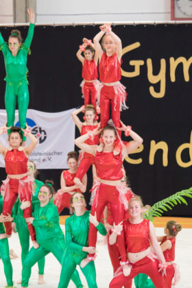 Die Tujus des SV Gut Heil Neumünster starteten außer Konkurrenz, konnten aber beweisen, dass sie in die oberste Kategorie „Hervorragend“ gehören. Ihre Vorführung „Mahana“- ein Paradies in Gefahr, steckte voller Überraschungen. Gekonnt präsentierten die Nachwuchsturner der Roten Hosen ihre Geschichte vom Leben der Menschen im Einklang mit der Natur… und überzeugten.